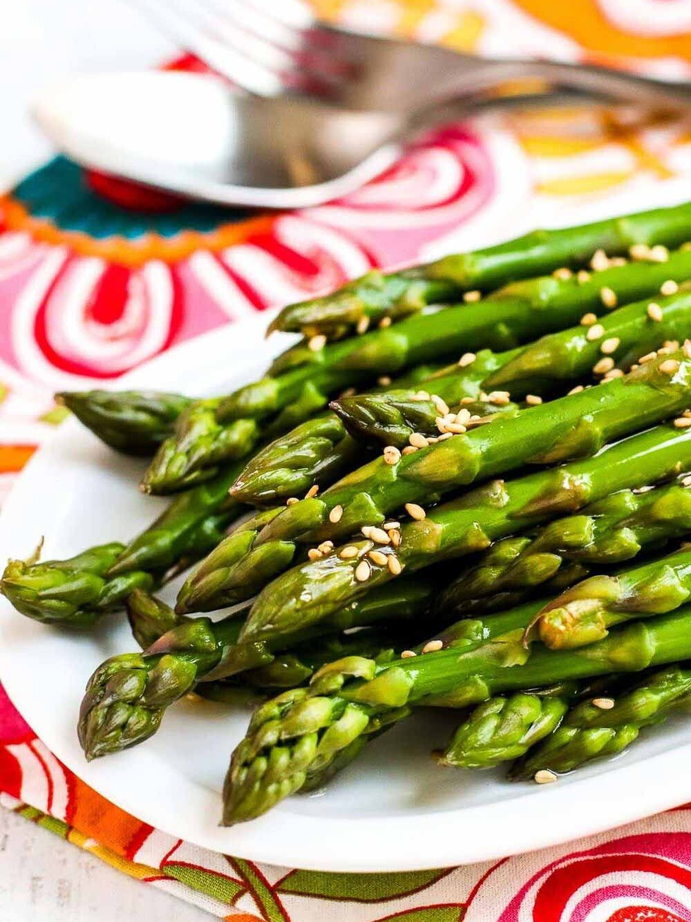 Asparagus soaks up a sesame-forward marinade that adds depth without extra effort. The quick chill time builds flavor fast. It’s a bright, fresh side for all sorts of meals.