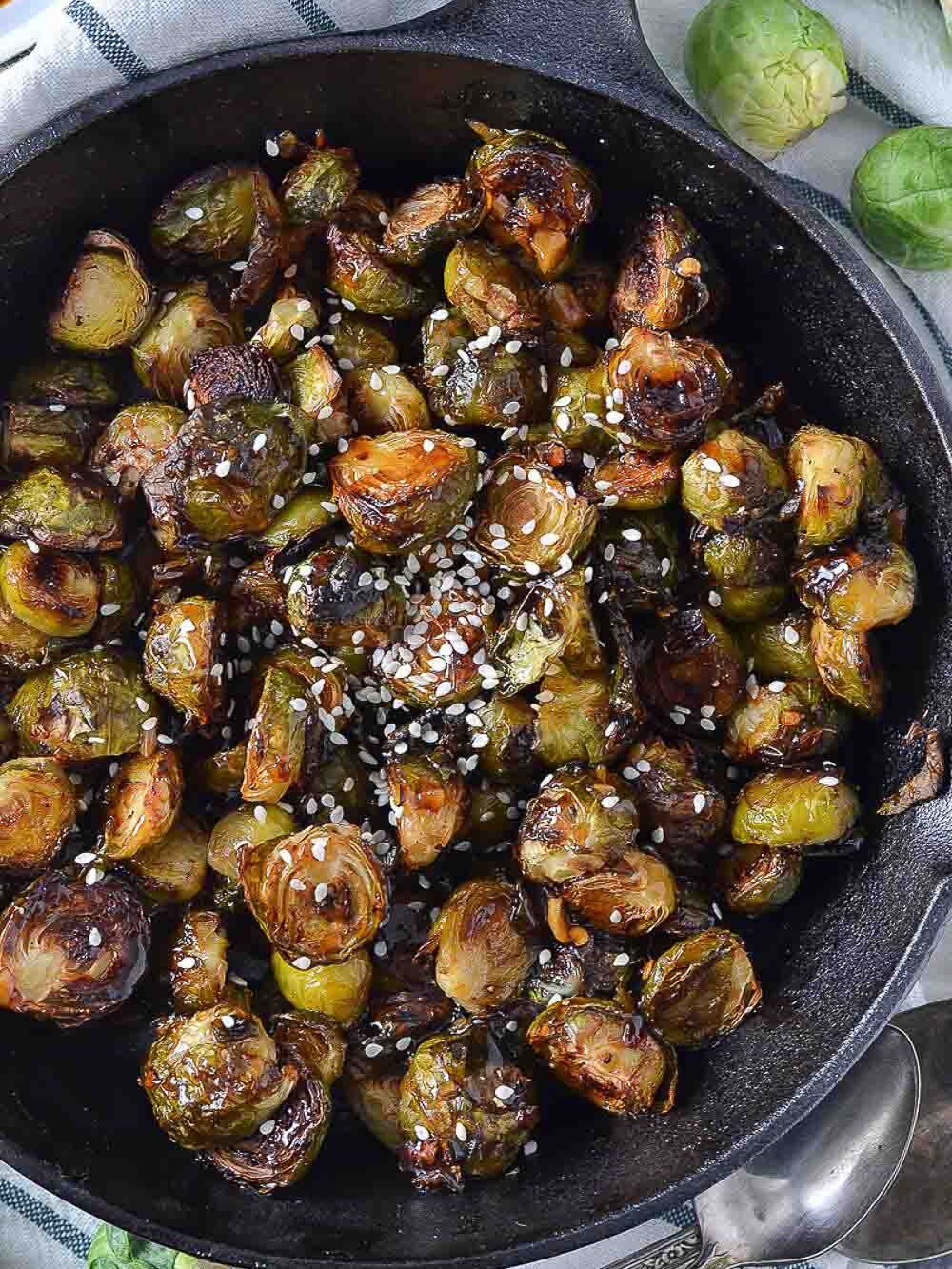Brussels sprouts roast until caramelized and crisp around the edges. The sweet-spicy glaze adds a bold pop of flavor. It’s a fun way to liven up a veggie side.