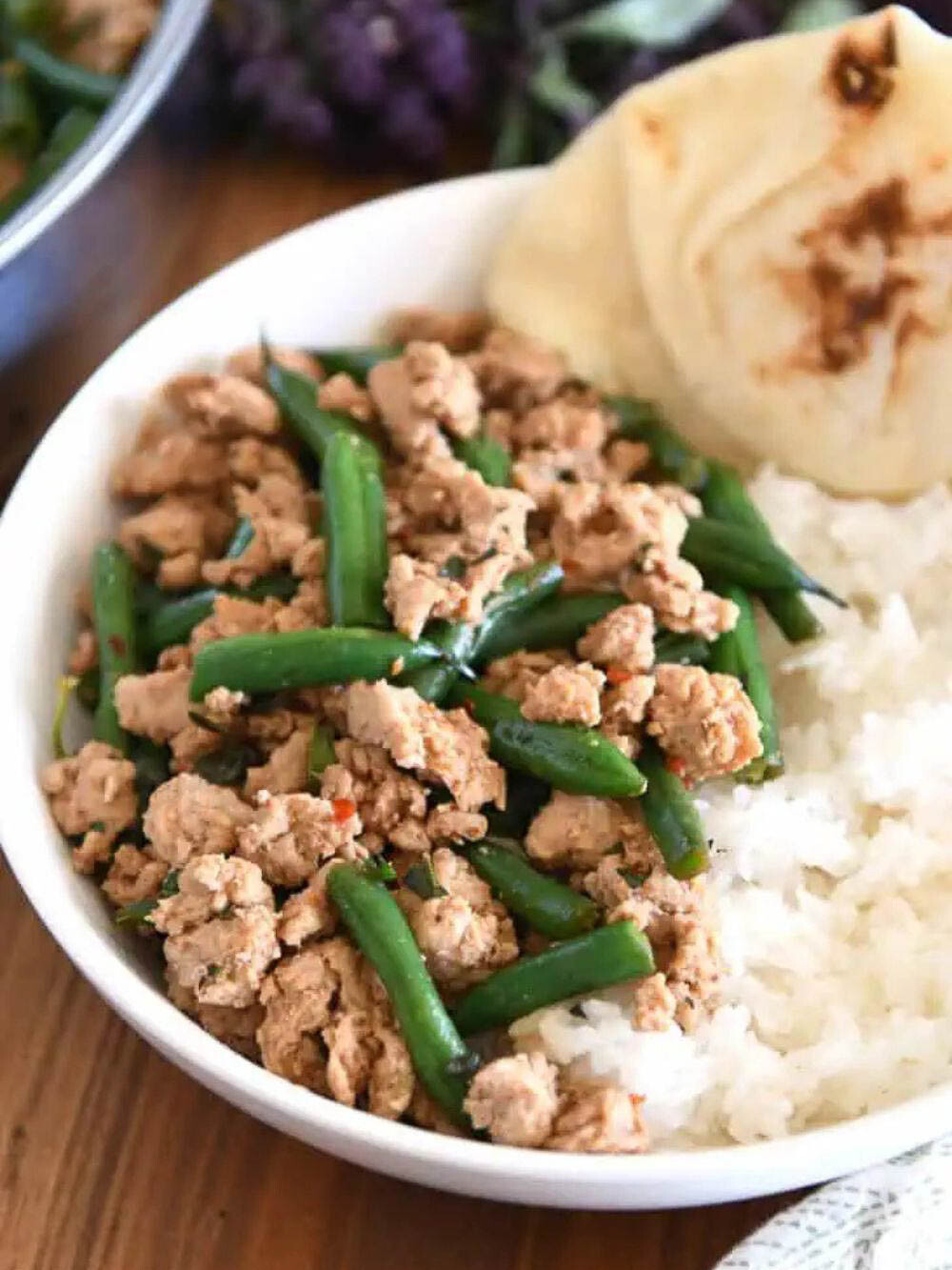 Ground turkey and crisp green beans cook quickly in a savory, Thai-inspired sauce. Everything comes together in a single pan for a fast dinner. It’s an easy go-to when you want something flavorful with minimal fuss.